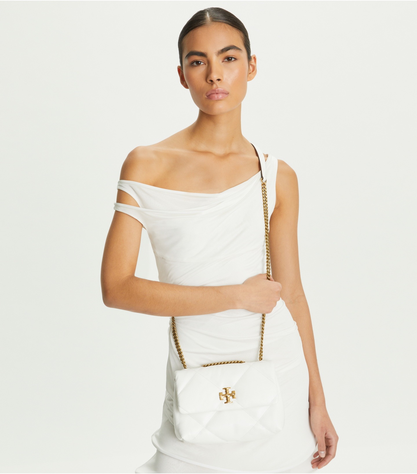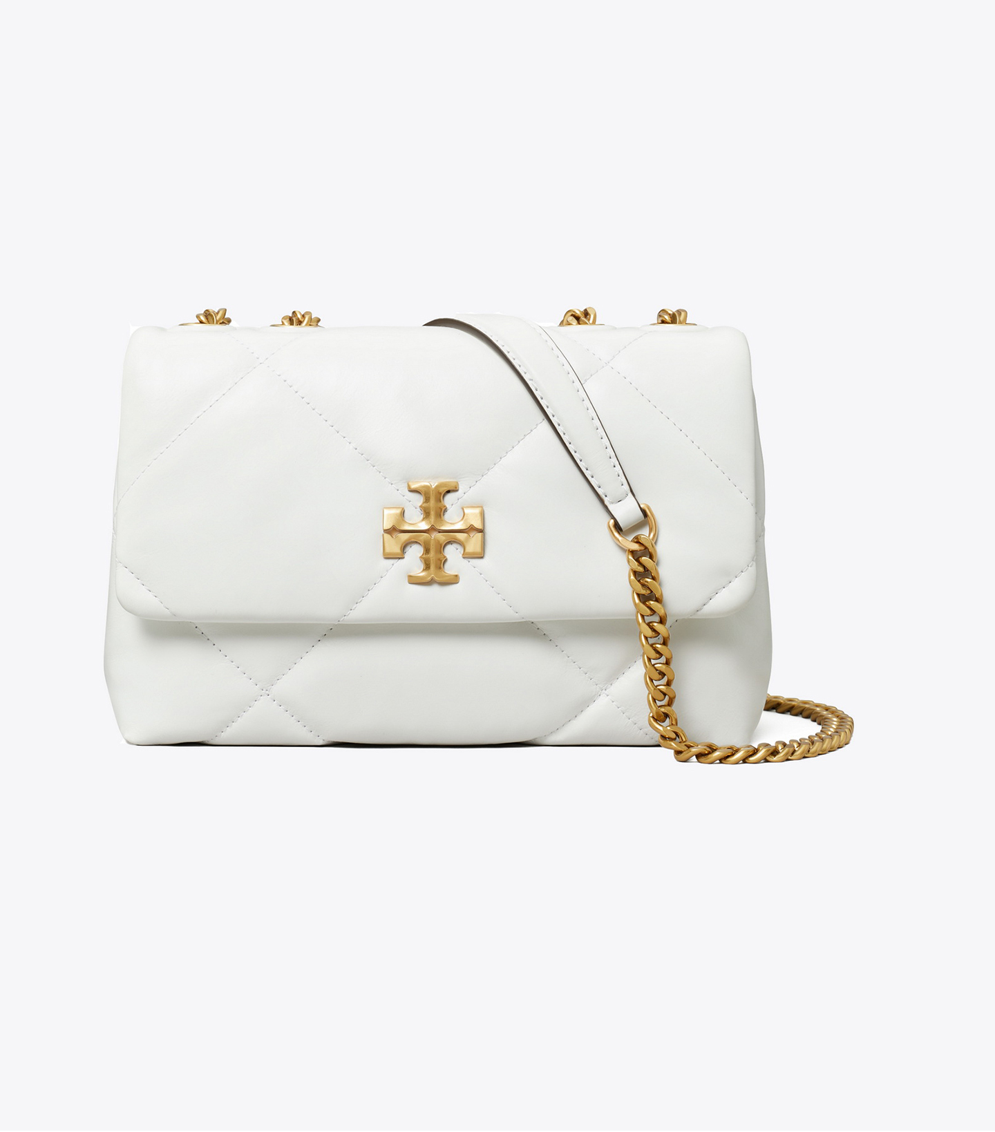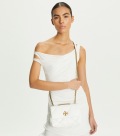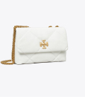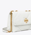 皮革質地柔軟,經久耐用,菱格紋絎縫立體蓬松。Kira 菱格紋絎縫小號肩背包,采用經典廓形設計,搭配斜面雙 T Logo 飾件,更顯時尚氣息。內設口袋,便于有序收納。通過調節折疊鏈條帶,隨心變換背法,折疊可單肩背,放長可斜挎。 小號兩用肩背包既適合都市日常搭配使用,亦可用作晚宴背包,輕松收納隨身必備品——手機、錢包、眼鏡盒。